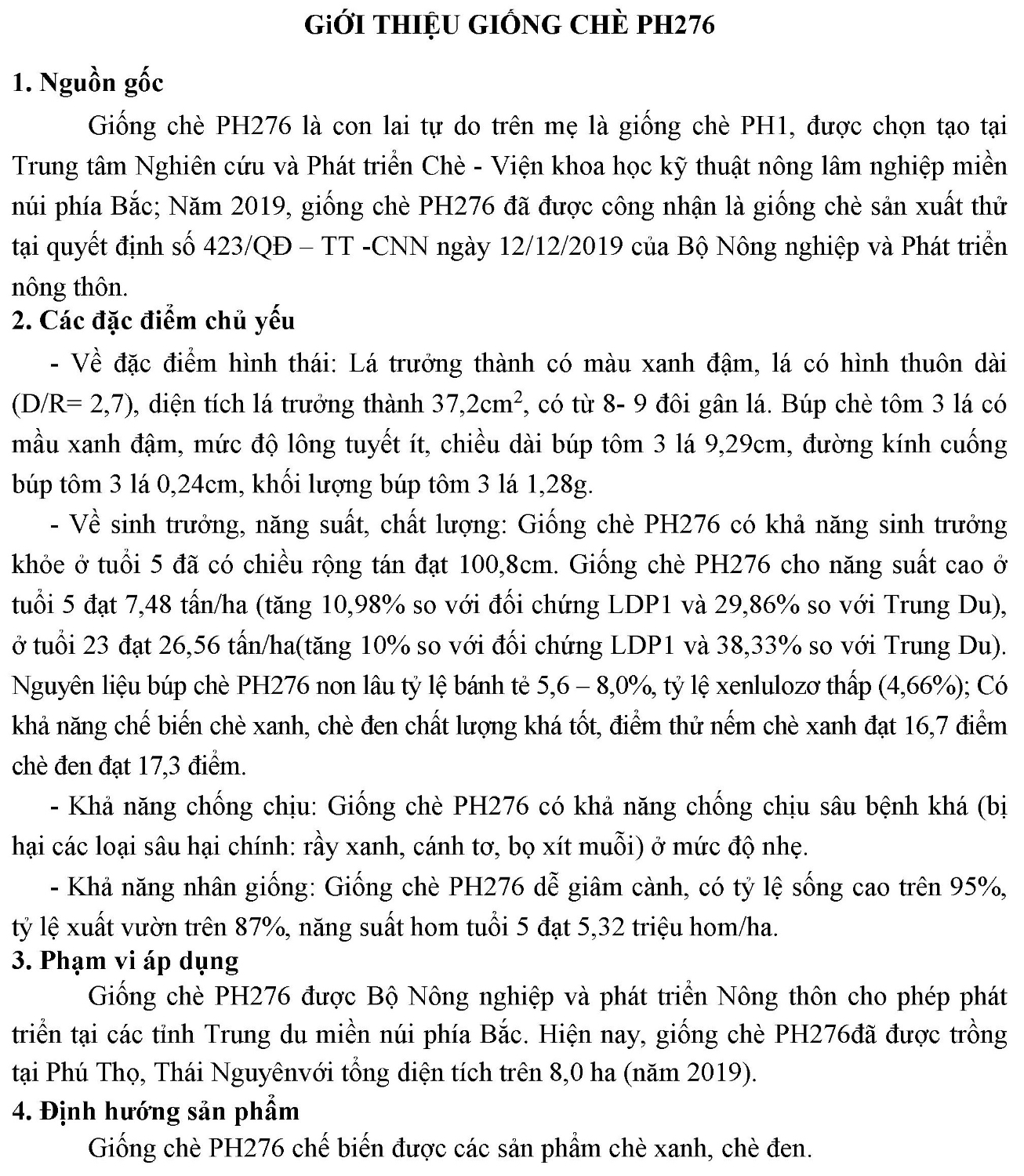 - Quyết định công nghận giống chè PH10